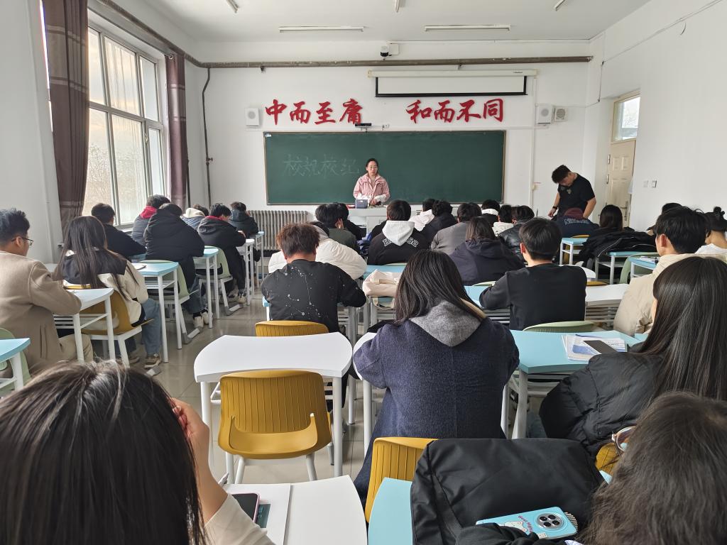 为增强同学们对于校规校纪的记忆和理解。首先,杨佳佳老师详细解读了校规校纪内容,涵盖出勤规定、校园行为准则、考试纪律等关键方面。尤其强调不要逃课、旷寝。针对频发现象,杨佳佳老师对同学们进行了思想教育,解释了校规的合理性。随后,通过案例分析,让同学们深刻认识到违反校规校纪的后果。最后,同学们纷纷表示以后会多加注意,不再违反校规校纪。