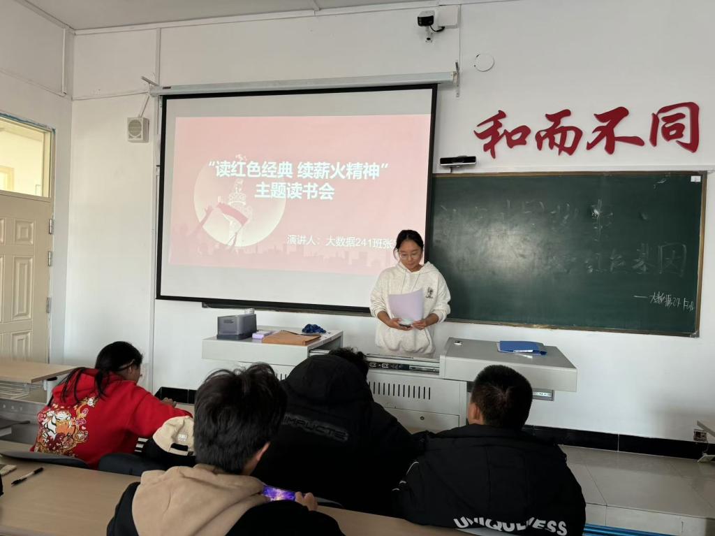 11月10日下午,大数据241班在第一教学区1402教室开展“读红色经典 续薪火精神”主题红色读书会,本次班会由团支书张宝怡主持,大数据241班39名学生参加此次班会.