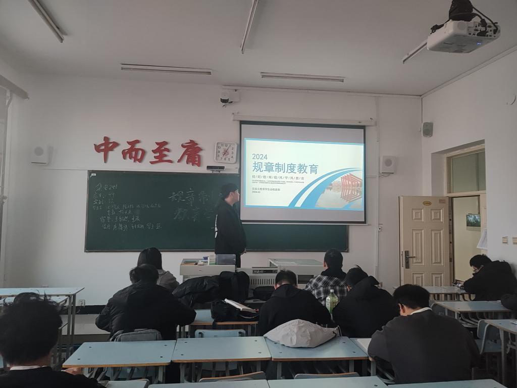 11月11日上午,集电241班在一号教学楼1404教室召开“规章制度教育”主题班会,本次会议由集电241班班长盖晟喆主持,共33人参加。