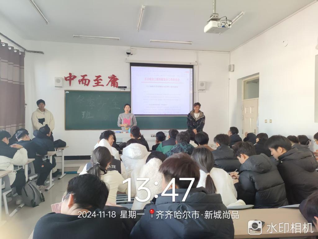 此次会议旨在增强学生们的安全意识,保障学生们度过一个平安、健康的冬季。首先,黄金石老师通过生动的案例分析,引导学生们深刻认识到冬季安全的重要性,从思想上筑牢安全防线。随后,黄金石老师还特别强调了“安全第一、预防为主”的责任意识。最后,黄金石老师向学生们强调了冬季火灾高发的原因及宿舍用电安全的重要性,进一步强化了学生们的防火常识和消防安全防范意识。