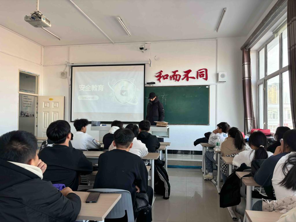 首先,班长马檍军强调了冬季安全教育的重要性,同学们需培养基本的安全意识和自我保护能力,安全教育的长远影响增强终身安全意识,预防未来生活中的安全风险。其次,班长说明了寝室安全注意事项,避免使用大功率电器,不私拉电线,离开寝室时断电,不在宿舍内吸烟,北区同学注意微波炉的使用。最后,班长马檍军着重强调了冬季校园安全,做好防滑措施,冬季路面容易结冰,穿好防滑鞋。冬季气温较低,外出时需做好保暖措施。重点对同学们强调,不要在易湖的冰面上行走,以防冰未冻实,不慎落水。绕行结冰路段,保持安全距离,远离潜在的溺水风险。