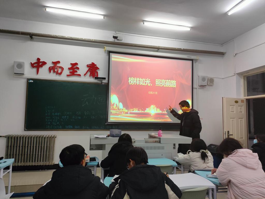 11月19日中午,动画241班在一教A区1415教室开展以“榜样如光,照亮前路”主题话动。本次主题活动由组织委员杨金羽主持。动画241班共36人参加。