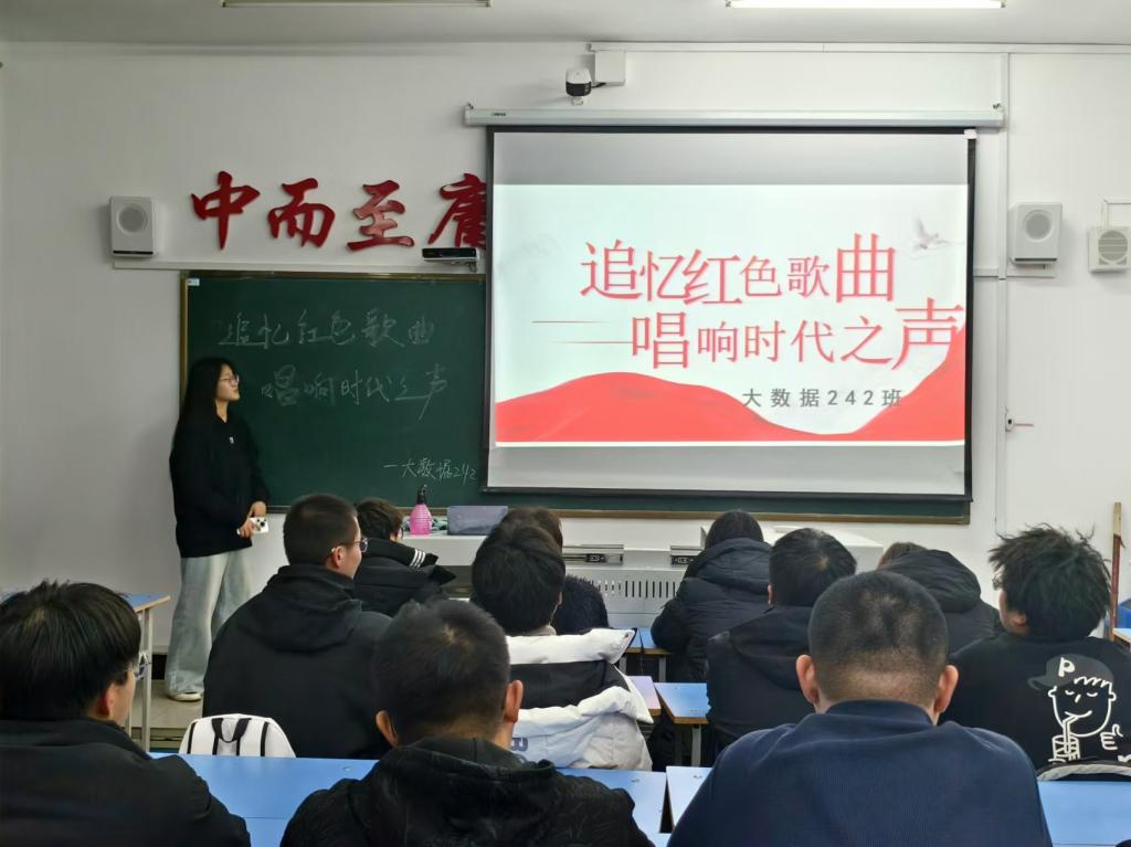 11月19日晚,信息工程系数据科学与大数据技术专业在一号教学楼1405召开“追忆红色歌曲,唱响时代之声”主题班会,本次班会由团支书王菁遥主持,大数据242班共40人参加。