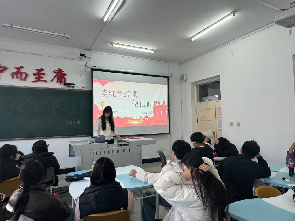 11月19日上午,视觉241班在一号教学楼1401教室开展“读红色经典,做信仰传人”主题活动。此次活动由团支书侯骄阳主持开展,共46人参加活动。