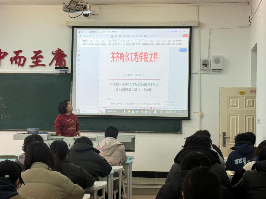 在会上辅导员刘阳老师为同学们详细的介绍辅修的专业,因为随着高等教育日益多元化和个性化发展,为了满足广大学生对跨学科知识学习的需求提升综合竞争力,正式启动辅修学位项目。此项目的推出旨在为学生提供更多元的学习平台,拓宽知识视野,增强就业竞争力,实现个人潜能的最大化。同学们听完了老师的讲解后,纷纷表示会积极参与。因为辅修专业不仅丰富了个人学术经历,还能有效促进学科交叉融合,为学生未来的职业发展奠定坚实基础。