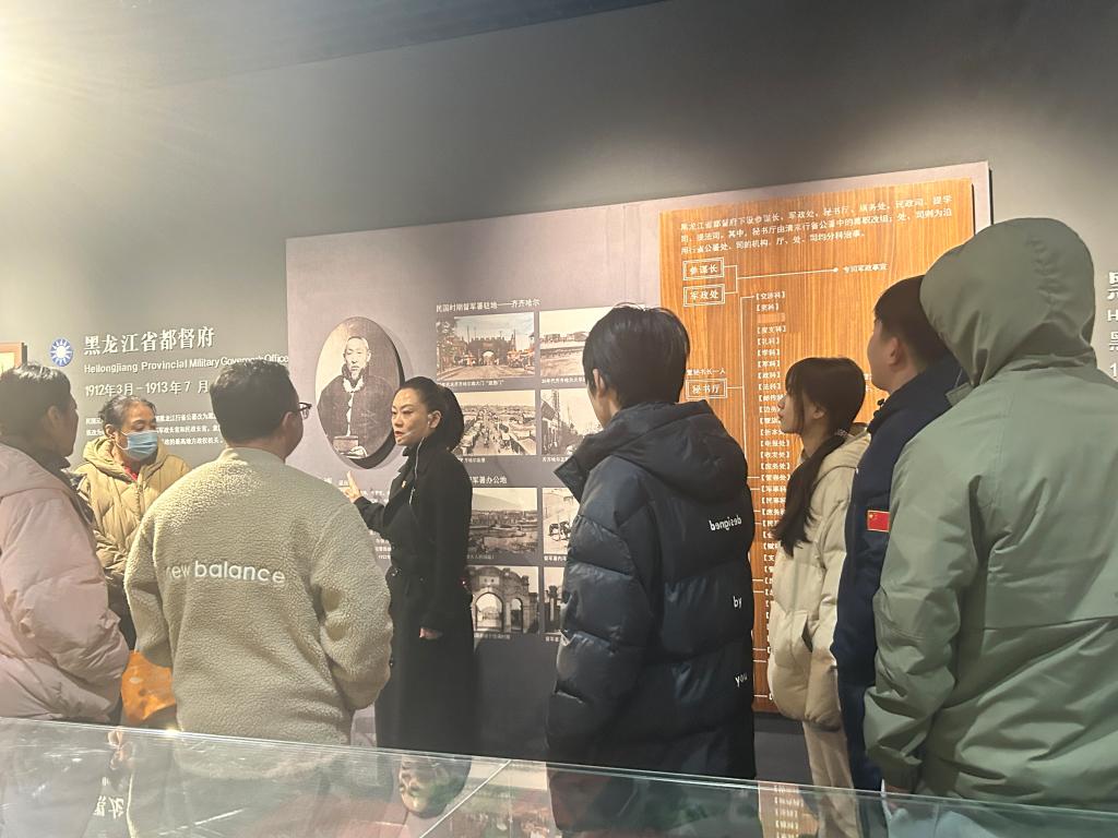 本次活动旨在让同学们走出校园,亲身感受历史的脉搏,增强对本土历史文化的了解与认知。首先,组织部部长郑智柏组织同学们有序到达督军署,这座古老的建筑庄严肃穆,其独特的建筑风格和布局瞬间将大家带入了那个风云变幻的历史时期。随后,在讲解员的带领下,同学们依次参观了各个展厅,详细了解了黑龙江省督军署在不同历史阶段所扮演的角色和发挥的作用,参观过程中,同学们认真聆听讲解,仔细观看陈列的文物、图片和史料,不时提出问题与讲解员互动交流,通过这种近距离的接触,同学们对东北地区的近现代史有了更为直观和深刻的认识,深刻体会到先辈们为了国家的独立、民族的解放所付出的巨大努力与牺牲。最后,同学们在督军署前留下了和这座古老建筑的合影,以此方式记录这次难忘的经历。