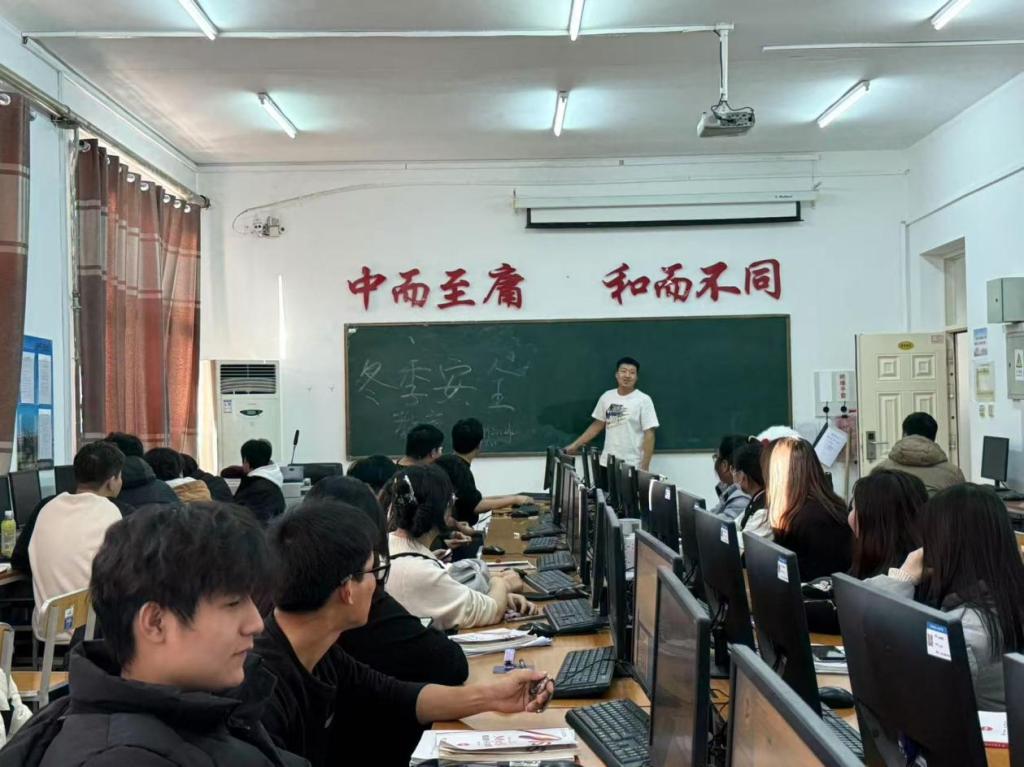 班会伊始,班长李佳阳以近期校园及周边发生的冬季安全事故为例,详细讲解了冬季防火、防滑、防流感、防诈骗等关键安全知识要点。在防火方面,他展示了因违规使用电器、私拉乱接电线等引发火灾的严重后果,告诫同学们务必严格遵守学校宿舍用电规定,杜绝使用大功率违禁电器,离开宿舍时要关闭电器电源及门窗。接着,李佳阳针对冬季道路安全进行总结分享。鉴于冬季道路结冰易滑的情况,他提醒同学们出行留意脚下安全,优先选择具有防滑功能的鞋子,切勿在光滑路面奔跑打闹。若驾车出行,雪天需降低车速以防止车辆滑移,保持安全车距,随时留意路面结冰或积雪状况,提前规划安全行驶路线。