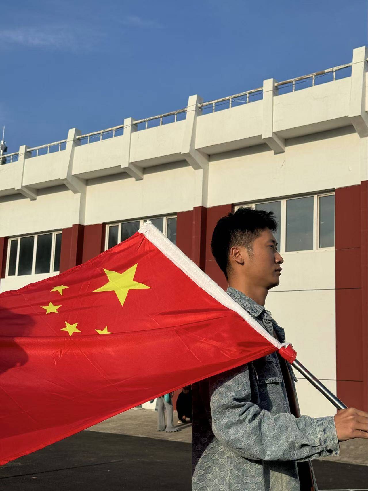 为深入学习贯彻习近平新时代中国特色社会主义思想,推动爱国主义教育。首先,由副书记韩俐君宣布活动流程。随后,升国旗,奏国歌,全体同学行注目礼,高唱国歌。接着,各专业代表依次进行国旗下讲话,回顾新中国成立 75 周年的光辉历程,激励同学们传承红色基因,结合时代要求,阐述青年担当,呼吁同学们铭记历史,为祖国发展贡献力量。最后,同学们与国旗合影,表达对祖国的热爱,同学们纷纷表示,将努力学习,以实际行动为实现中华民族伟大复兴贡献力量,