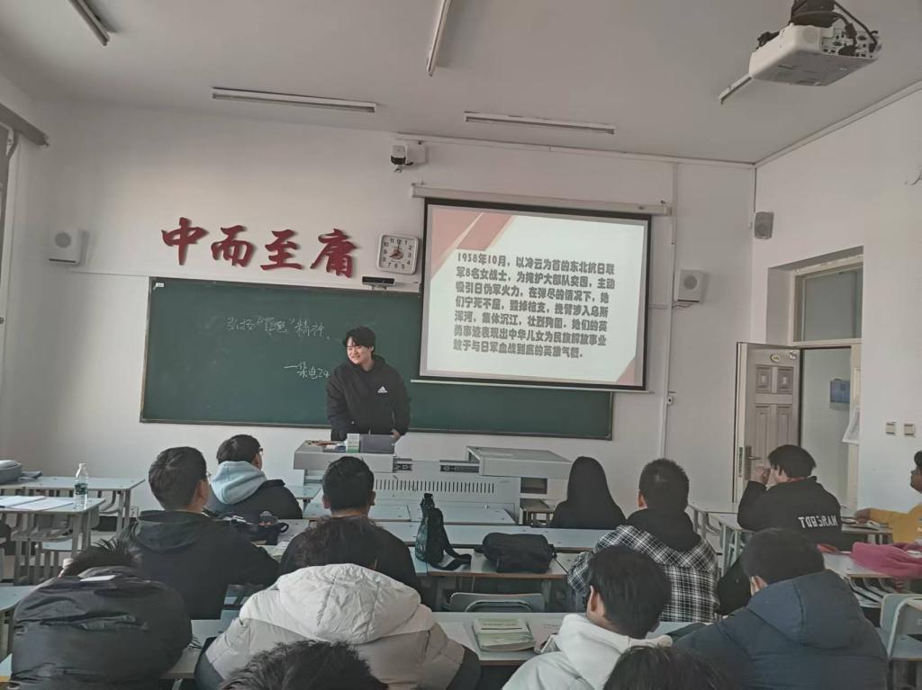 本次活动旨在通过红色故事的分享与交流,加深同学们对革命历史的了解,传承红色基因,弘扬红色精神。首先,副书记韩俐君详细的介绍了红色精神的内涵与时代意义,强调这些精神是中华民族宝贵的精神财富,也是当代青年砥砺前行的动力源泉。随后,同学们踊跃上台,分享了一个个感人至深的红色故事。从刘胡兰面对敌人铡刀时的英勇不屈,到董存瑞舍身炸碉堡的壮烈牺牲;从红军长征途中的艰难困苦,到抗日战争时期的众志成城,每个故事都仿佛将大家带回到那段激情燃烧的岁月,让同学们深刻感受到革命先辈们坚定的信仰和无私的奉献。最后,在故事分享环节结束后,同学们展开了热烈的讨论并纷纷表示,通过这些红色故事,明白了今天的幸福生活的来之不易。