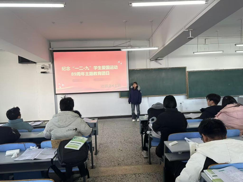 12月3日上午,动画241班在图书馆201教室开展纪念“一二•九”学生爱国运动89周年主题教育团日活动。本次活动由团支书李远娜主持,共有36名同学参与此次活动