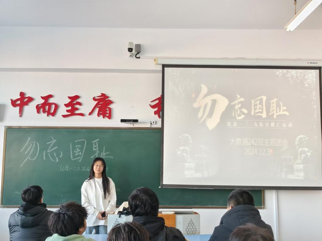 12月4日下午,信息工程系大数据242班在一号教学区1413教室召开纪念一九二抗日救亡运动主题团会,本次团会由团支书王菁遥主持,大数据242班共40人参加。