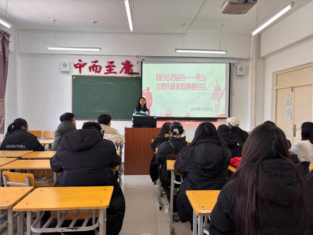 12月5日上午,信息工程系电商241班在二教1202教室开展“践行志愿路——勇当志愿先锋 彰显青春担当”主题活动,本次活动由团支书王依铭主持,电商241共32人参加