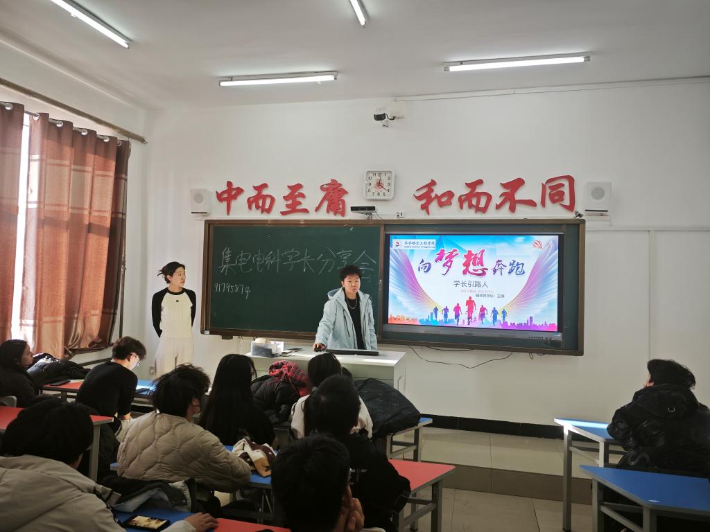 12月5日中午,集电24级与电科24级在一号教学楼1405教室共同召开“学长分享会”,本次会议由信息工程系辅导员黄金石主持召开,共90余人参加本次会议。