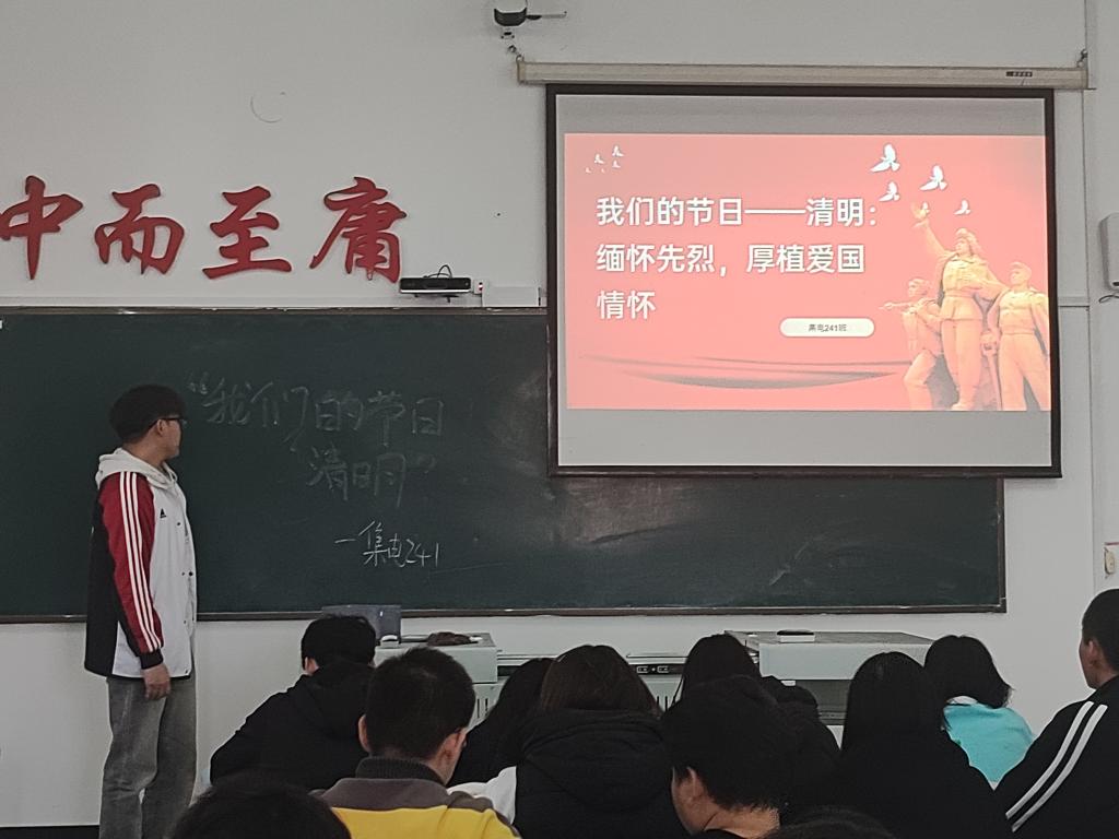 在清明节前夕,为缅怀革命先烈,传承红色基因,集电241班于3月28日下午在一号教学楼1401教室召开“缅怀先烈”清明主题班会,此次班会由集电241班团支书孙宇轩主持,全班同学共同参加。