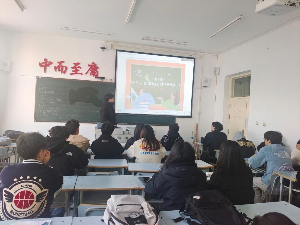 本次团课旨在引导同学们深入领会团的纪律要求,增强纪律意识和规矩意识。团课伊始,高同学以清晰的条理和严肃的态度,介绍了本次团课的重要意义。他指出,《中国共产主义青年团纪律处分条例(试行)》是共青团加强自身建设、严明纪律的重要依据,关乎每一位团员的行为准则与责任担当,希望同学们认真学习、深刻领会。在讲解环节,高同学围绕条例的主要内容,结合实际案例,对条例中的各项规定进行了详细解读。从违反政治纪律、组织纪律到违反廉洁纪律、群众纪律等多个方面,用一个个鲜活的事例,让同学们直观感受到违反团纪的严重后果。随后,团课进入讨论交流阶段。同学们踊跃发言,分享自己的学习心得。最后,高同学对本次团课进行总结,再次强调了遵守团纪的重要性,并鼓励同学们将学习成果转化为实际行动,在日常学习、生活和社会实践中,自觉践行《中国共产主义青年团纪律处分条例(试行)》的要求,展现新时代共青团员的良好风貌。