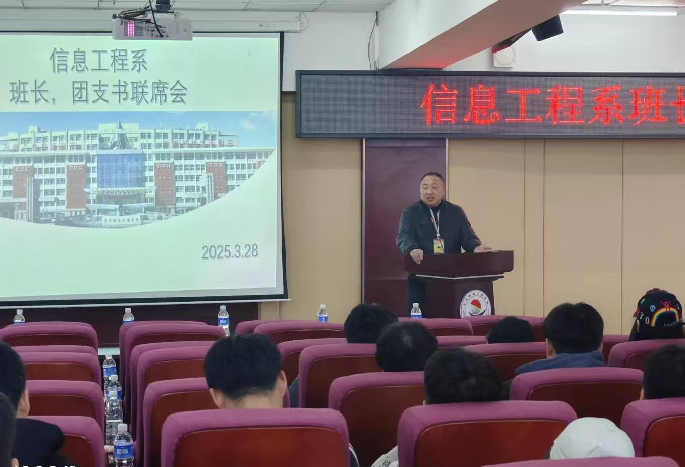 3月28日下午五点,信息工程系在图书馆501召开《信息工程系》班长、团支书联席会议由门佳兴主持,信息工程系党总支副书记孙晓芳和信息工程系全体班长和团支书共同参与,为迎接审核评估工作奠定坚实基础。