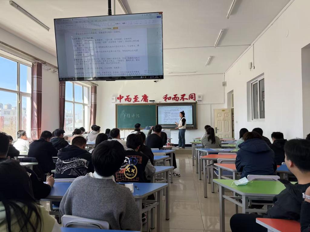 班会内容从审核评估的背景、目的、意义等方面展开,帮助同学们深刻理解本科教育教学审核评估工作不仅是对学校教育质量的全面检验,更是推动我校持续改进的重要契机。兰天月运用生动的案例和数据,详细阐述了学生在评估过程中的主体作用,使同学们自身与审核评估的联系,激发了同学们的积极性。