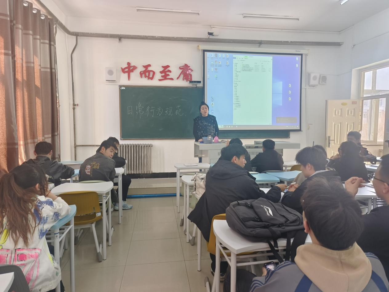 班会开始,首先辅导员兰天月对清明节假期返校情况进行了总结,指出大部分学生能够按时返校,但仍存在个别延迟现象。同时,告诫同学们五一假期要按时归校,其次要求同学们要严格日常纪律考勤,要在吸烟区吸烟、日常宿舍卫生达标、宿舍禁止使用违规电器、仪容仪表不规范等举止不文明和违规违纪行为。最后,辅导员督促学生杜绝迟到、早退等不良现象,号召班干部以身作则,带头维护课堂纪律,共同营造积极向上的学习氛围。