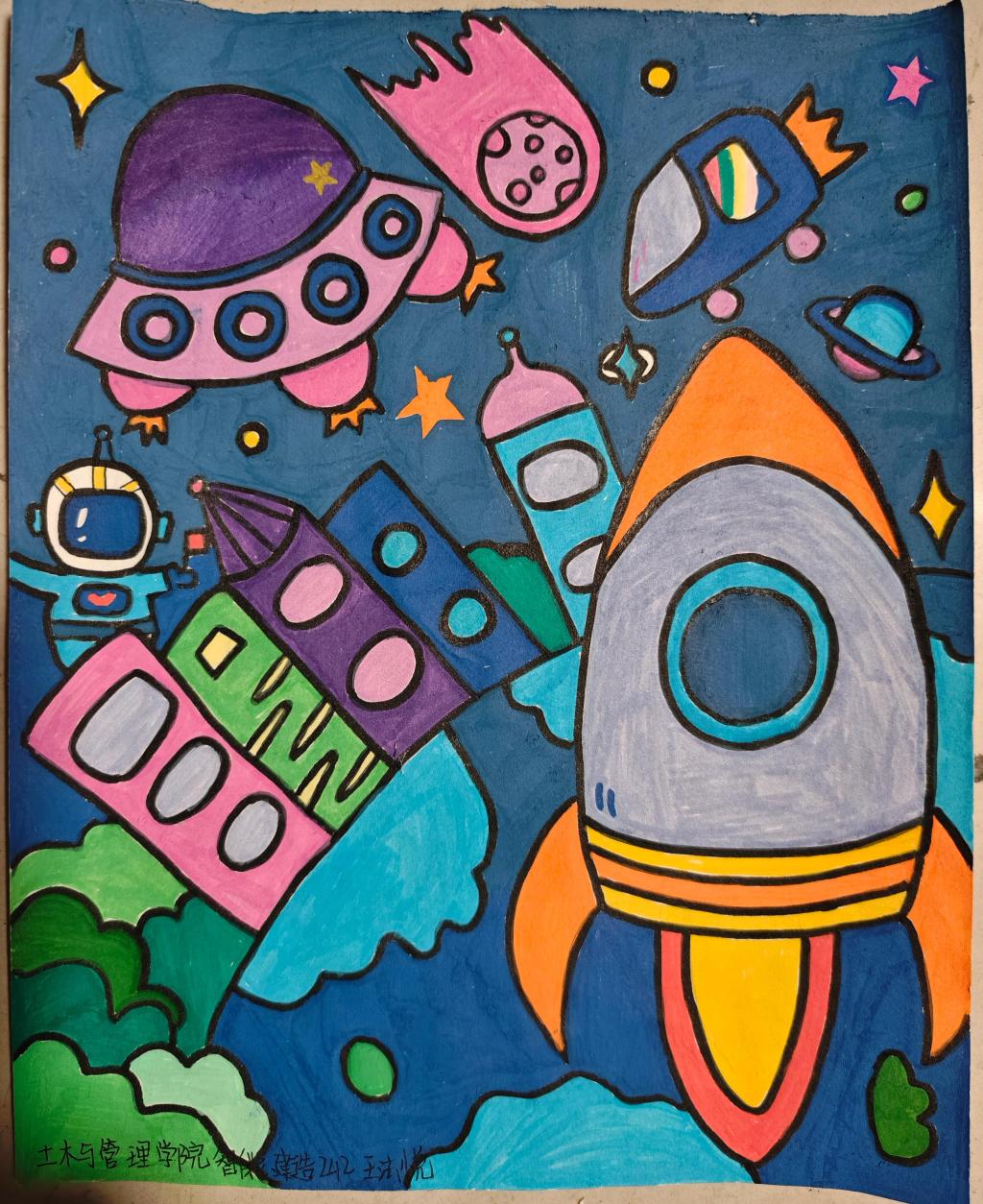 比赛吸引了众多学生踊跃参与,报名人数达 24 人。参赛同学需以个人名义参赛,且保证作品原创。作品尺寸要求为 A3 或 A2,绘画材料不限。比赛过程中,同学们用画笔勾勒心中未来科技蓝图,呈现出虚拟现实、太空探索、智能生活等丰富多样的科幻主题作品。