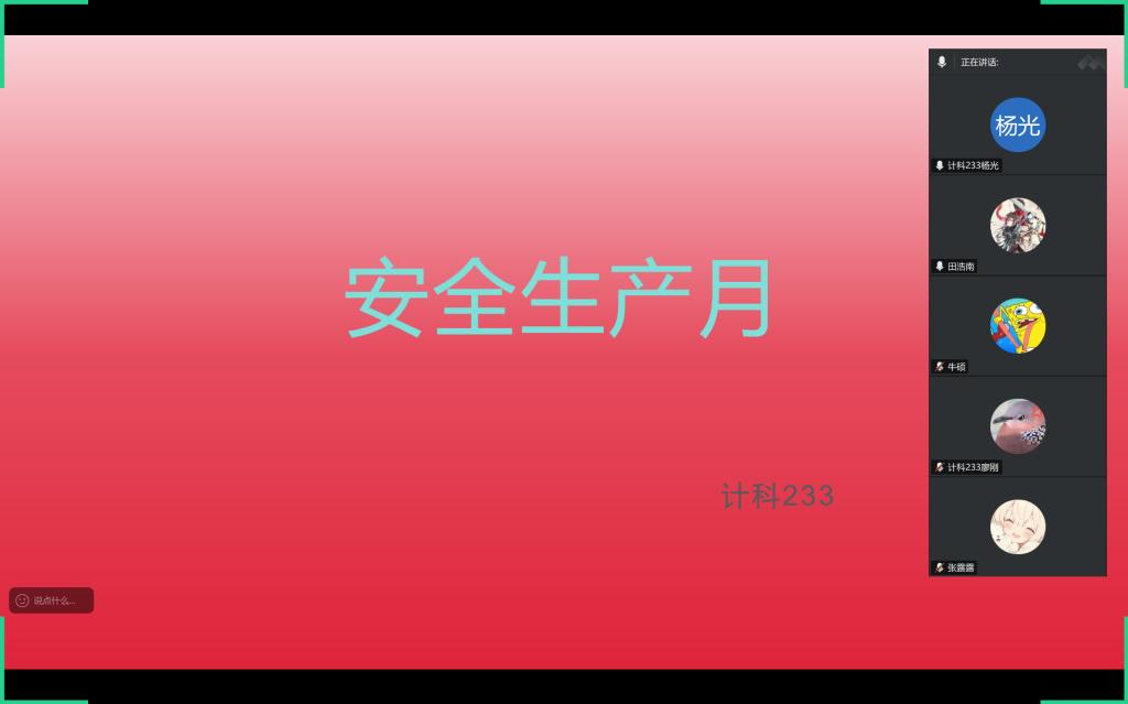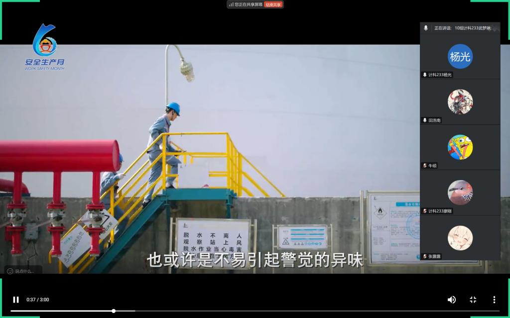 6月10日早上,电科231班组织开展安全生产主题读书、“全民安全公开课”安全生产微课堂。此次会议由电科231团支书吴京辉主持,共有25人参加。