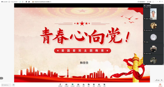 7月16日下午,计科23级在线上开展爱国爱党主题班会,由计科23级辅导员杨佳佳主持,计科23级全体成员参加会议。