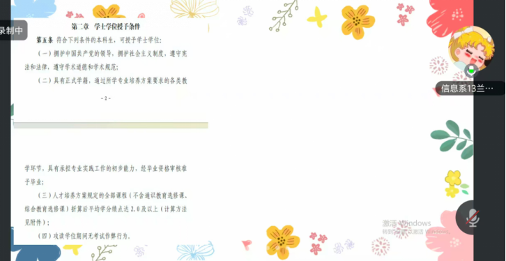 随后,兰天月老师就开学补考相关事宜进行说明,明确了补考的时间、地点及流程,要求需参加补考的同学利用假期剩余时间认真复习,制定合理学习计划,确保顺利通过考核。同时,她结合学校学位授予管理办法,向同学们详细解读了学位授予的绩点要求、学术规范等关键条件,鼓励大家从日常学习抓起,重视每一门课程的学习质量,为顺利毕业及学位获取打下坚实基础。