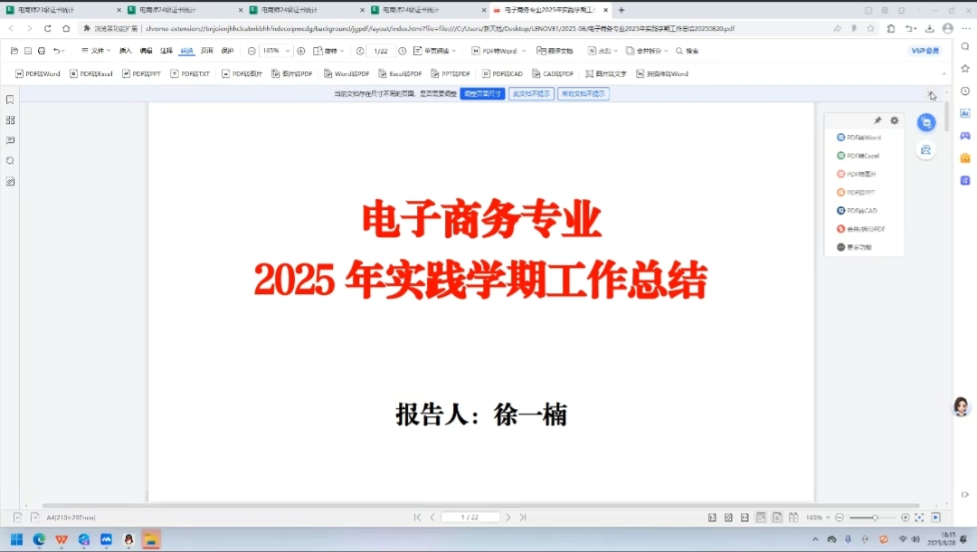 随后,专业长徐一楠进行电子商务专业专业实践学期实习情况进行总结,对优秀实习团队提出表扬,指出学生在实习期间所出现的问题,同时,分享了专业内近期学生竞赛获奖、工作情况等方面的优异成绩,与家长交代学生情况,希望达成家校合作,共同促进学生成长,培养具备创新精神和实践能力的高素质人才,为行业输送优秀毕业生。
