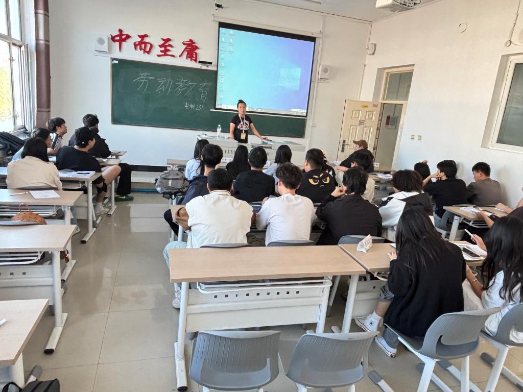 此次班会主要以培育学生劳动精神,引导其树立正确劳动观为主要目的。首先辅导员薛苗苗老师结合PPT与短视频,从“日常家务劳动”“校园服务劳动”“社会公益劳动”三个维度,直观展示了劳动在生活中的多元形态,还分享了大国工匠坚守岗位、平凡劳动者默默奉献的故事,让同学们深刻体会到“劳动不分贵贱,实干成就价值”的道理。随后,互动环节中,同学们热情分享自己的劳动经历:有的讲述周末帮父母分担家务的收获,有的分享参与校园值日、绿植养护的心得,还有同学展示了自己烘焙、手工制作的劳动成果。在“劳动技能小课堂”中,几位同学现场演示了叠被子、整理书桌的实用技巧,大家认真学习、积极模仿,现场氛围十分活跃。最后,班主任总结强调,劳动是立身之本、成事之基,鼓励同学们从身边小事做起,主动参与劳动实践。班会在全班同学齐诵“劳动倡议书”中落下帷幕,大家纷纷表示将以实际行动践行劳动精神,在劳动中收获成长。