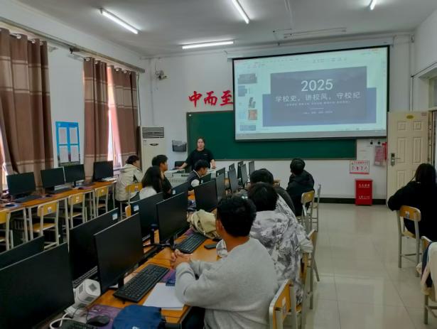 会上,彭老师围绕校园文化、校规校纪、成长规划等核心内容细致讲解,为同学们未来的校园生活与发展指明方向。彭博老师首先从“校园文化”切入,结合学校的办学理念与特色活动,向同学们介绍了校园里的学习氛围、生活场景及文化载体,帮助大家更快熟悉校园环境,增强对学校的认同感与归属感。随后,她聚焦 “校规校纪”与“文明礼貌”,通过具体案例强调遵守纪律的重要性,提醒同学们在日常学习生活中要注重言行举止,尊重师长、团结同学,共同维护良好的校园秩序与班级氛围;同时,她还逐点解读《学生守则》中的关键条款,明确课堂出勤、宿舍管理、校园安全等方面的要求,让“规则意识”深入每位同学心中。