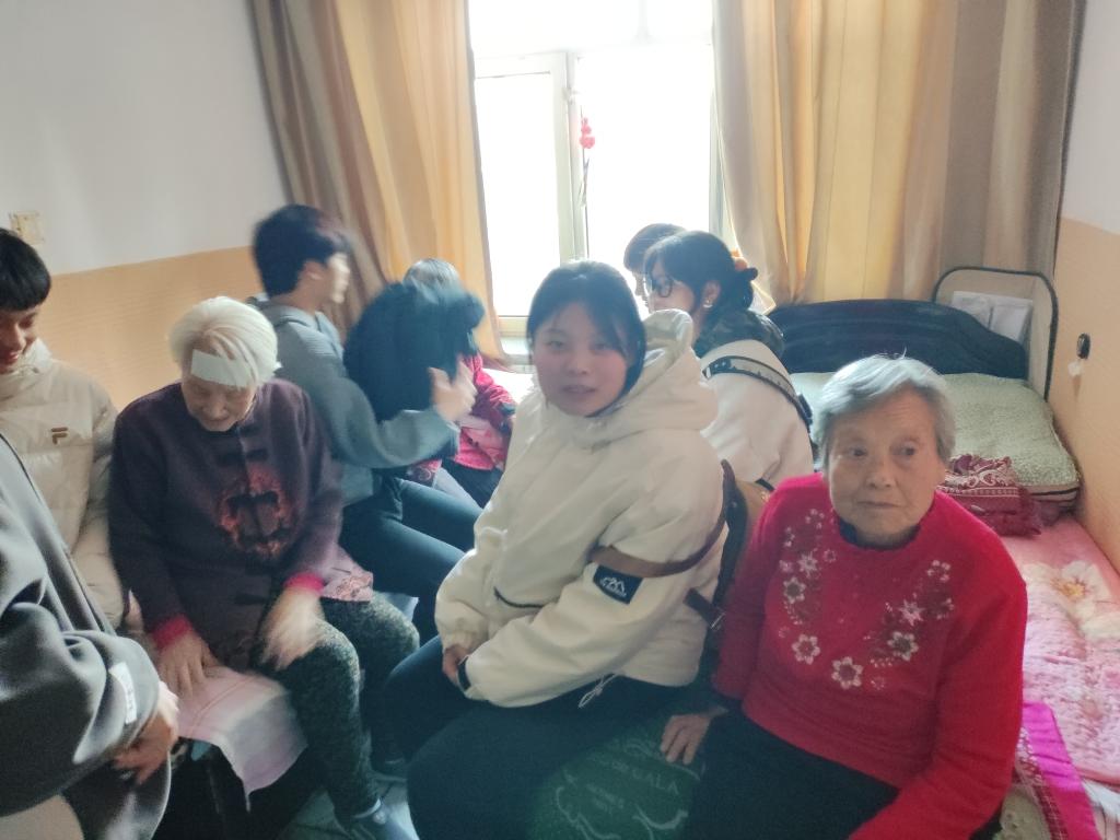 首先,由学姐带领大家到达善源老年公寓,走进老年公寓,干净整洁的房间,被褥被叠的整整齐齐,床头柜上放着老人们常用的老花镜,保温杯,墙上还贴着家属送过来的照片;花园里,几位老人围坐在石桌旁下象棋,公寓的负责人将活动人员带到指定地点后,大家见到了和蔼可亲的老爷爷老奶奶们,双方很快熟悉了起来,所有人你挨着我我挨着你围在一起开始了亲切的交谈。然后,志愿者与老人说话,谈天,还表演了节目,为老人们唱歌,跳舞,逗的所有人哈哈大笑,还一起做了游戏,互动表演环节正式开始。志愿者们带来了合唱《夕阳红》、戏曲片段等节目,78 岁的张奶奶还主动加入,和志愿者一起唱起了经典老歌,现场掌声不断。随后的手工折纸环节中,老人们跟着志愿者学习折千纸鹤,虽然动作有些缓慢,但每个人都专注又认真,活动室里充满了温馨的氛围。最后,活动在合影留念中落下帷幕。志愿者们与老人们约定下次再来,不少老人拉着志愿者的手不舍道别。此次探访不仅为老人们的生活增添了乐趣,更让他们感受到了社会大家庭的温暖,也呼吁更多人关注老年群体的精神需求。