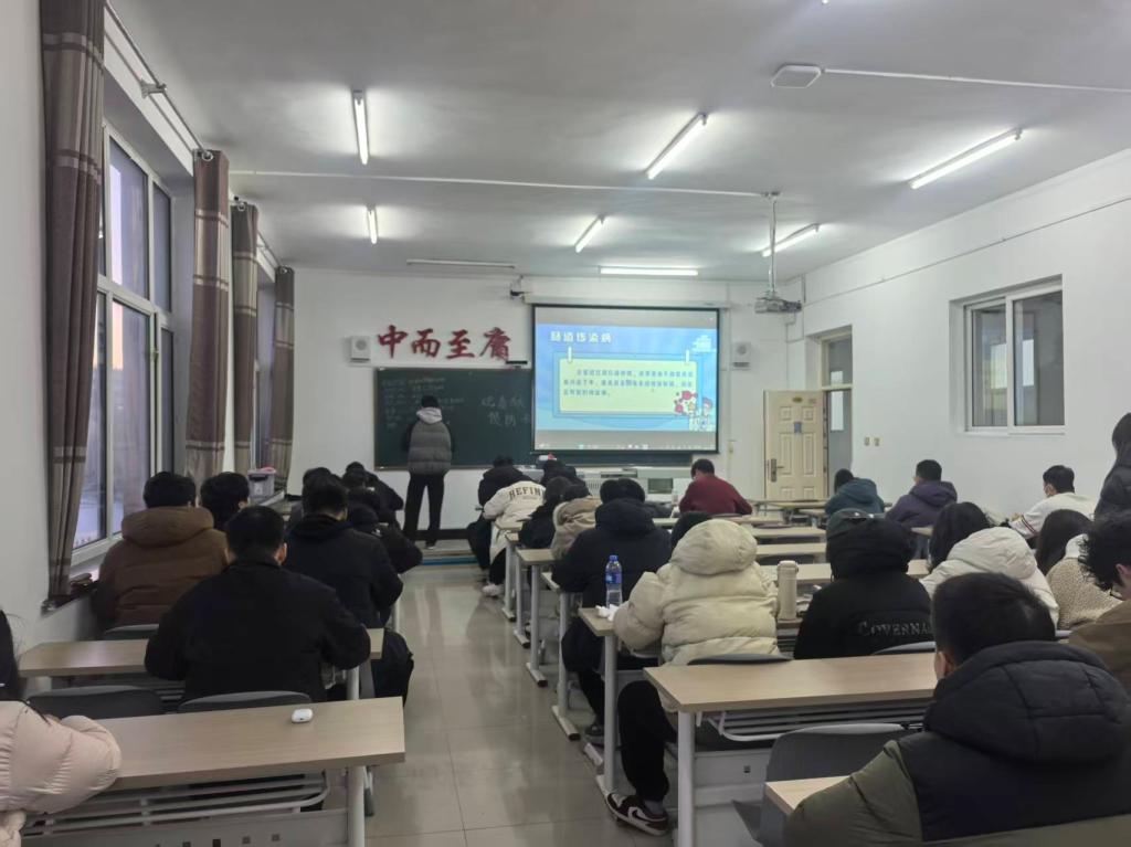 首先,同学们观看视频,视频内容紧扣秋季传染病高发特点,针对流感、诺如病毒感染、流行性腮腺炎等常见病症,系统讲解了疾病的传播途径、典型临床表现、科学预防手段及应急处置流程。接着,重点突出了勤洗手、常通风、规范消毒、合理膳食、适度锻炼等日常防控关键措施,同时明确了校园内出现疑似症状后的报备流程、就医指引与隔离要求,为同学们提供了全面且具操作性的健康指导。最后,视频播放结束后,结合校园及周边传染病防控形势,再次强调了秋季防疫的重要性,要求同学们将所学知识转化为实际行动,严格遵守班级晨午检、通风消毒等防控制度,若出现发热、咳嗽等不适症状需第一时间报备,做到早发现、早干预;同时倡导大家养成良好卫生习惯,增强自身免疫力,携手筑牢班级健康防护屏障。