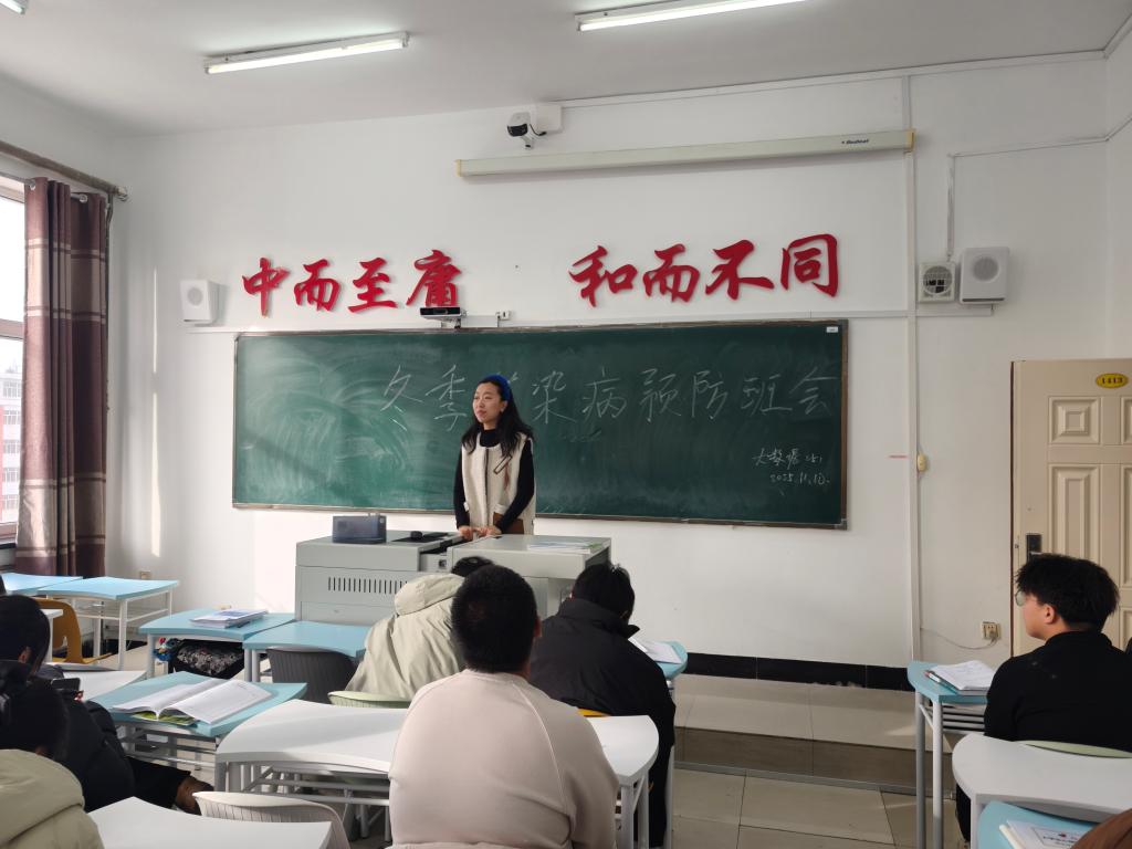 11月10日,导员胡欣月在一#1413教室组织大数据251班全体同学召开冬季预防传染病班会,围绕秋季传染病防控及学生行为规范开展专题教育,切实筑牢校园健康安全防线。