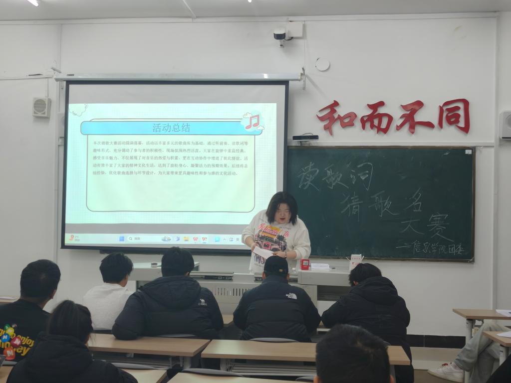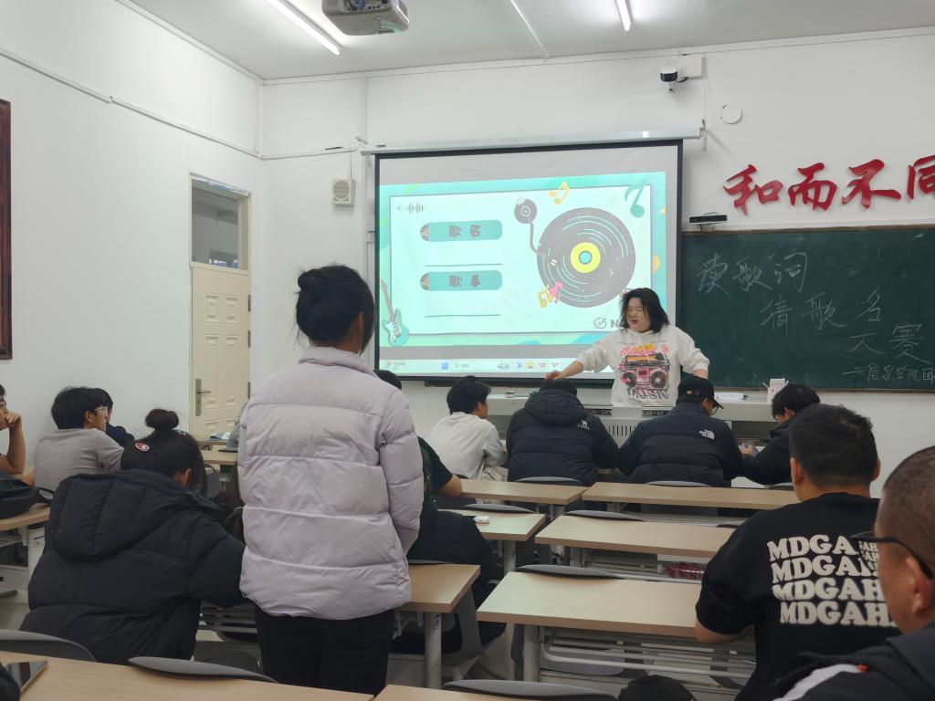 11月12日下午,bevictor伟德国际1946团委在一号教学区1402教室开展了“读歌词猜歌名大赛”,此次活动由计科244班团支书袁一丹主持,bevictor伟德国际1946的学生参与其中。
