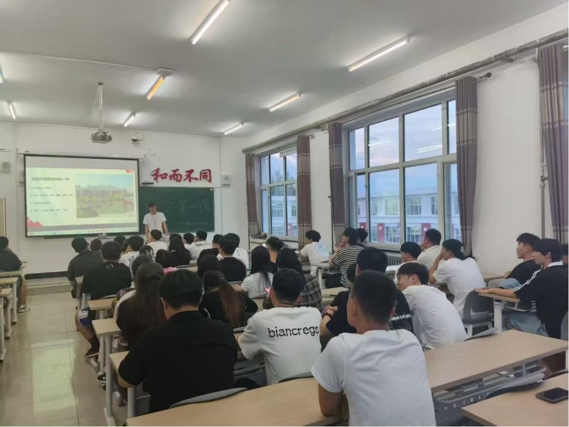 本次班会的目的是帮助同学们熟悉校园,让同学们马上适应新的环境和学习氛围,辅导员学长贾超淇首先为了让同学们尽早进入学习状态,有个良好的开端。讲述介绍学校办学理念、优势学科、校园资源(如图书馆、实验室、体育场馆、科技园),讲解学院专业设置、师资力量、人才培养方案(如课程体系、实践环节),明确不同学期的学习重点。强调学院的学风建设要求(如考勤制度、学术诚信规范)与奖助政策(奖学金、助学金、勤工助学岗位的申请条件与流程)。还说明了宿舍管理、食堂就餐等。让同学们短期适应课程节奏、通过英语四级,长期明确考公、考研、就业等方向,提前积累相关能力。重点强调人身安全(校园内出行、校外兼职的注意事项)、财产安全(防范电信诈骗、宿舍防盗)、网络安全(不泄露个人信息、不传播不良内容)。还给同学们组织班级“破冰”行动,让同学们先简单的认识了一下。