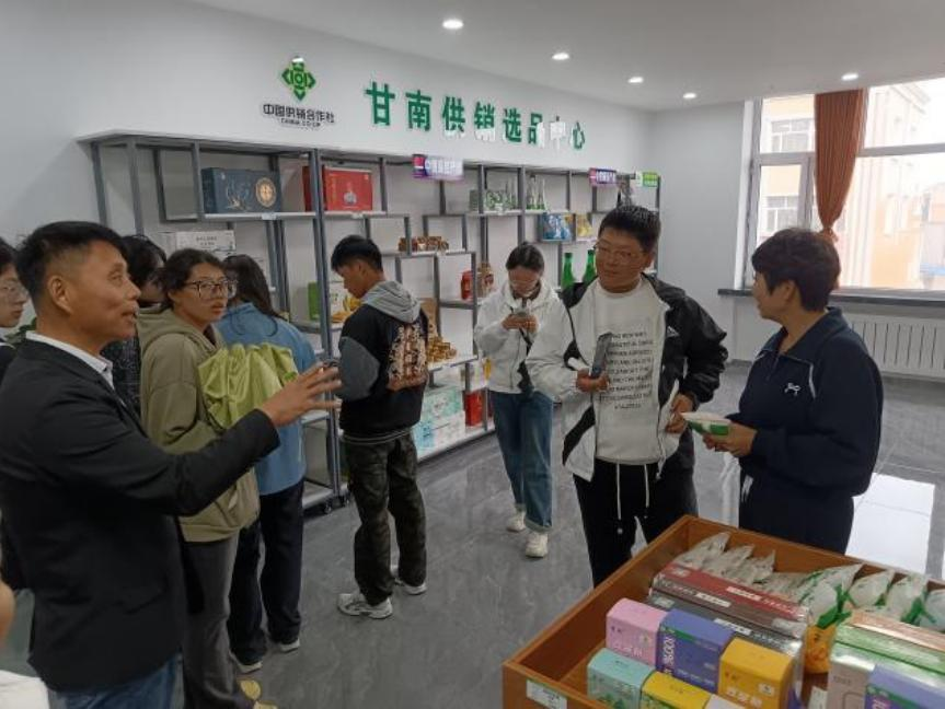 甘南供销选品中心作为县域电商供应链的核心平台,承担农产品品牌运营、渠道整合及物流优化等职能。活动期间,专业长徐一楠指导学生系统参观选品区、直播运营中心及仓储物流基地。企业负责人详细介绍了农产品标准化选品流程、电商渠道分销策略及直播带货运营模式,帮助学生直观理解县域电商“从田间到市场”的全链条运作机制。