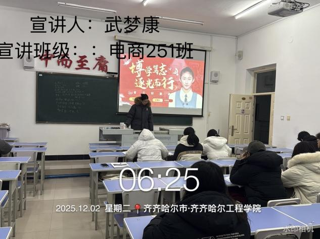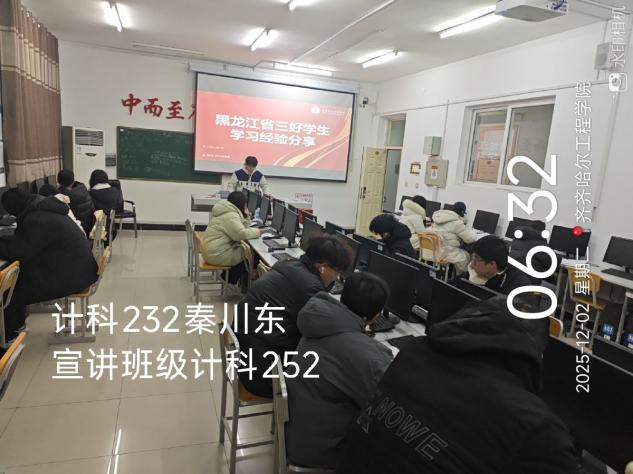 12月2日至3日早自习,省三好学生代表接续开展新一轮宣讲活动,走进计科252、电商251、计科231等班级传递学习智慧。计科232班秦川东同学以 “黑龙江省三好学生学习经验” 为核心,结合自身学业与竞赛经历,分享了高效课堂学习、课后复盘的实用技巧;武梦康同学走进电商251班,围绕 “博学笃志,逐光而行”的主题,拆解了专业学习与能力提升的结合路径;计科231班侯蕊同学则聚焦“课后复习方法”,通过思维导图制作、错题总结、同学互问等具体方式,为计科252班同学梳理了巩固知识的关键步骤。每位分享者都紧密结合专业特点与自身经历,将抽象的学习理念转化为可落地的实操方法,内容兼具针对性与实用性。