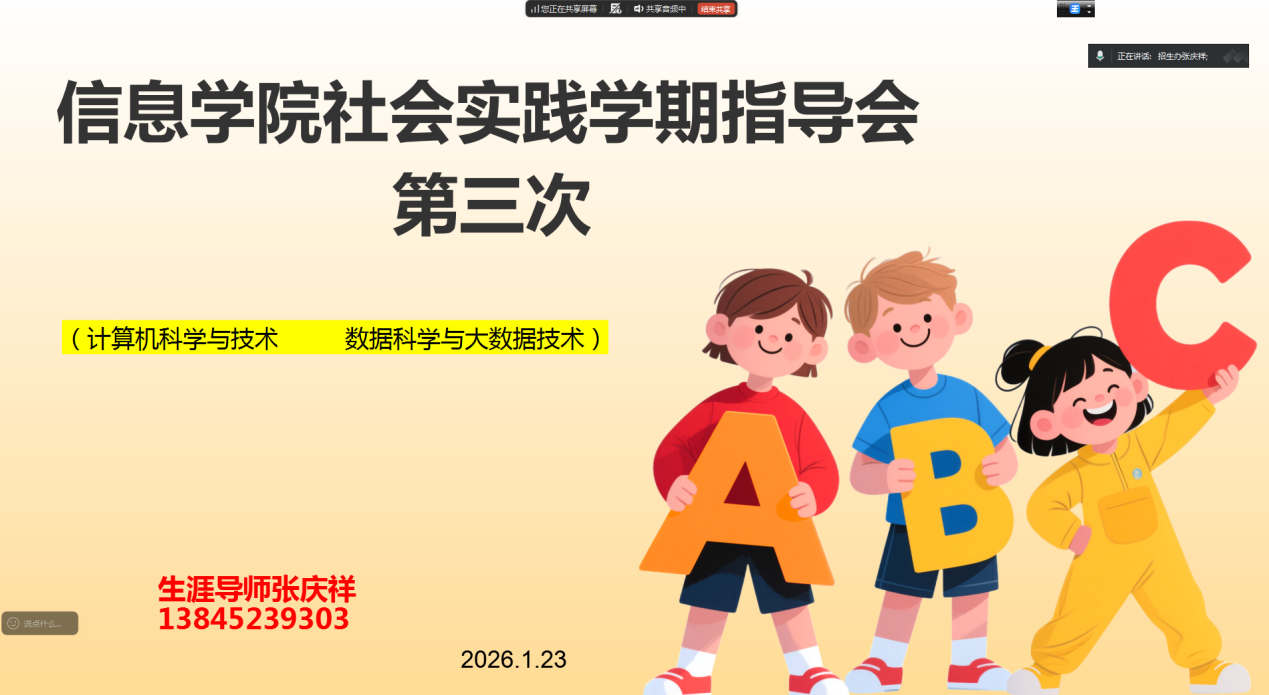 1月23日晚7点,生涯导师张庆祥通过线上平台,开展家访活动。此次家访主要针对所指导的计算机科学与技术专业、数据科学与大数据专业学生的家长,旨在通过一对一的线上交流,让家长更全面地了解孩子本学期在校的学习与生活状况。