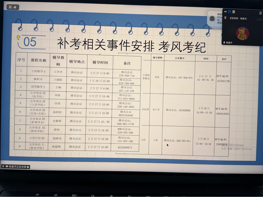 为进一步加强班级学风建设,严肃考试纪律,强化同学们对学业挂科风险的认识,引导大家端正学习态度、严守考试底线,2月28日,集电、电科251班召开“挂科考风考纪”主题班会。本次班会由辅导员陈星月主持,全体同学参加。