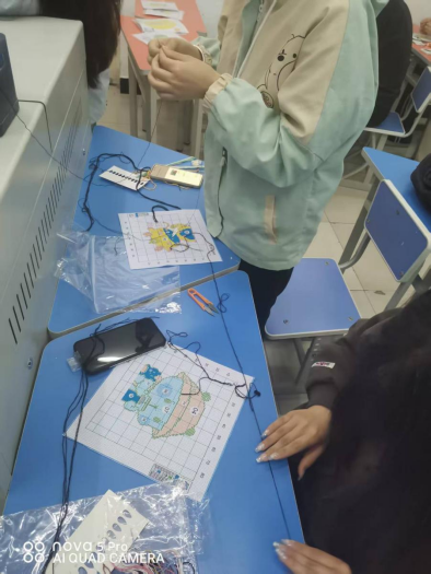在实践环节中,同学们领取到绣布、绣线、绣针等材料后,迅速投入活动中。大家时而专注穿针引线,时而轻声交流针法技巧,现场气氛温馨而热烈。活动尾声,同学们互相展示成果,分享创作心得。此次活动不仅使同学们感受到了传统文化的魅力,更在专注创作中感受到了内心的平静与成就感。