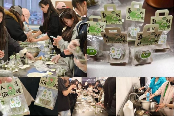 活动前期,学生会成员分工协作,从物料采购、场地布置到流程规划,每一步都经过细致打磨。为提升制作的便捷性与体验感,本次活动特别选用了青团预拌粉,让同学们能够更专注于制作过程,沉浸式感受其中的乐趣。