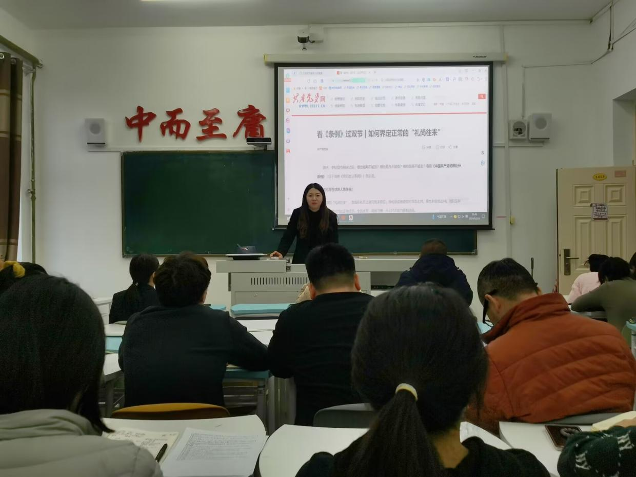12月24日,党总支在1号教学楼1413教室召开了元旦春节双节廉洁提醒会议,由纪检委员王昀碧主持,信息工程系全体人员参加。