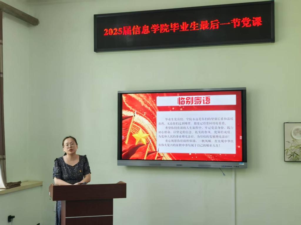此次 “最后一堂党课” 既是对毕业生党员在校期间学习成果的总结,更是对未来征程的动员。它承载着党组织的深情与期望,激励着毕业生党员在人生新赛道上牢记党员身份,践行党的宗旨,以实际行动书写无愧于时代、无愧于人民的青春答卷。