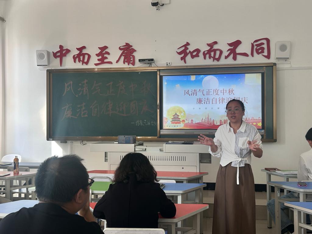 会议伊始,学院党委纪检委员陈星月围绕“风清气正度中秋,廉洁自律迎国庆”主题,结合上级关于节日期间廉洁工作的部署要求,向全体教职工传达了双节期间廉洁自律的核心要点。会上重点解读了“十紧盯十严禁”纪律要求,明确严禁违规吃喝、违规收送礼品礼金、公车私用、滥发津补贴、公款旅游等行为,尤其强调要警惕“隔空送礼”“指尖上的形式主义”、高档烟酒茶过度包装等隐形变异“四风”问题,提醒教职工在“八小时外”严守纪律底线,杜绝酒驾醉驾、黄赌毒、封建迷信等违纪违法活动,同时在安全生产、民生保障相关工作中杜绝麻痹松懈与不作为、乱作为现象。