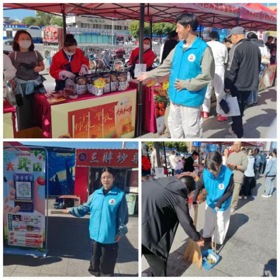 活动期间,学生党支部志愿者团队围绕展销会现场秩序维护与环境保障开展专项服务。主要工作内容包括:一是实施展区环境清洁工作,对活动区域进行垃圾清扫,确保展销环境整洁有序;二是开展现场引导服务,志愿者对现场市民提供活动指引,协助参展市民高效参与商品展销活动。据统计,当日累计服务时长超50小时,覆盖参展群众200余人次,有效提升了展销活动的组织效能与参观体验。