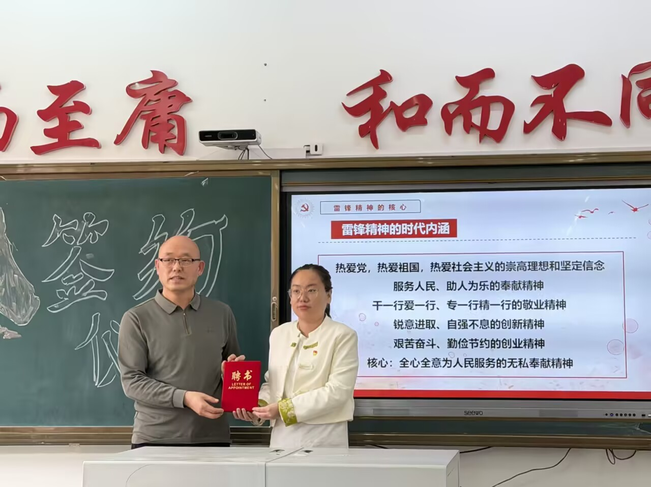 仪式最后,为进一步深化雷锋精神宣讲工作,充分发挥榜样引领作用,经研究决定,正式聘任吕晓岩同志为bevictor伟德国际1946、艺术与体育学院雷锋宣讲员。bevictor伟德国际1946党委书记李野现场宣读聘任决定,并为吕晓岩同志颁发聘书,双方合影留念,现场掌声雷动,共同见证这一重要时刻。
