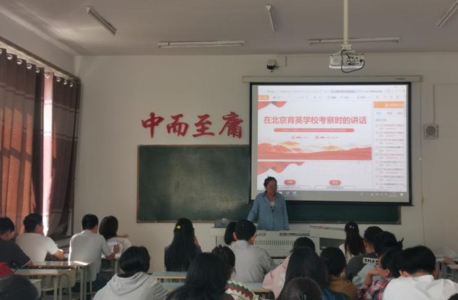 本次专题学习会议由李野书记主持召开,在会前李书记将学习内容下发给全体教工要求教师们先自学,会上李书记对重点内容进行解读。习近平总书记在考察育英学校时强调,教育事业是党和国家事业的重要基石,要加强党对教育工作的全面领导,培养德智体美全面发展的社会主义建设者和接班人。因此,我们要深入研究习近平总书记对教育事业的重要指示精神,认真贯彻党的教育方针和政策。各位老师要立德树人做好本职工作,在教学中不仅要培养学生的专业技能更要落实好课程思政,树立学生正确的价值观。
