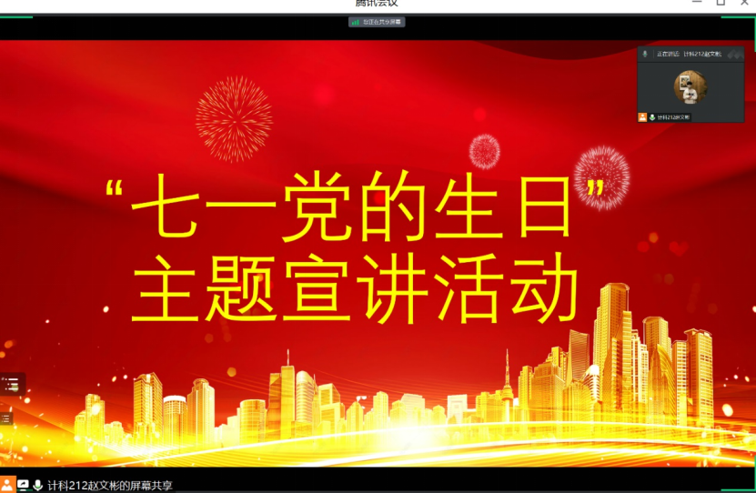 7月1日下午,信息工程系团总支在腾讯会议上开展了“七一党的生日”主题宣讲活动,由青工部长主持,共65人参加。