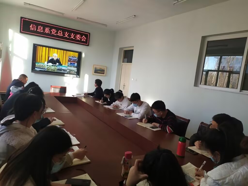 11月13日下午,信息系党总支在1#2304组织全体党员,对《学习贯彻党的十九届五中全会精神中央宣讲团宣讲报告会》的视频进行了学习,报告会以观看视频形式举行,信息系党总支设立会场组织收听收看,信息系党总支书记任鹏飞主持,信息系党员全体参加。