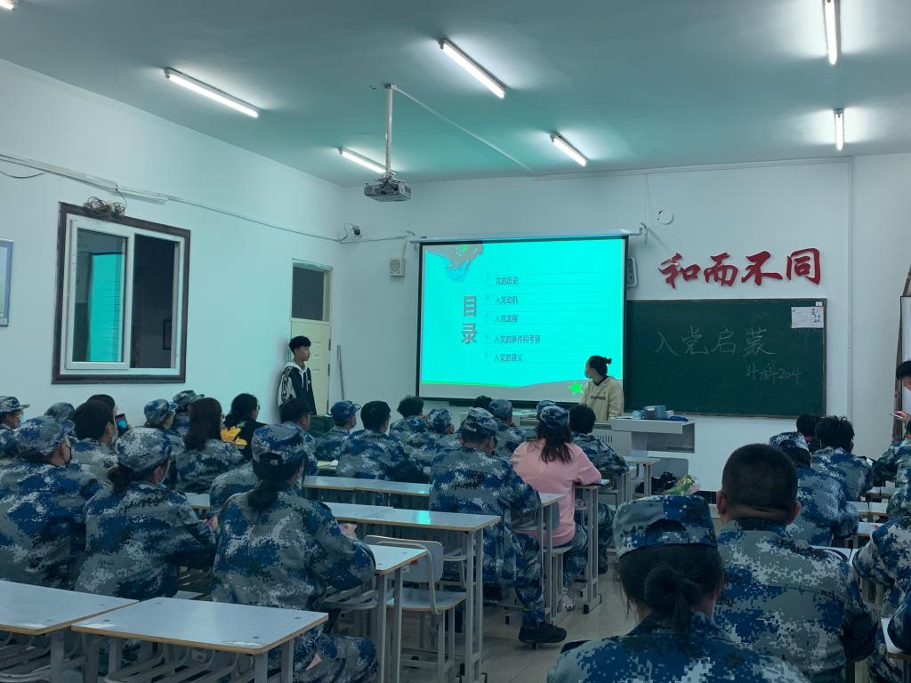 本次班会的主题是“心怀理想,志存高远,以实际行动积极向党组织靠拢”。班会分为5个模块:党的历史、入党动机、入党流程、入党的条件和考察和入党的意义分别进行讲解。班会中,高明悦结合中国共产党党史、现状以及发展学生党员的相关规则,紧紧围绕着中国共产党是一个什么样的政党,我们为什么要加入中国共产党,我们怎样才能加入中国共产党进行了全面细致的介绍。随后,强调了入党动机的重要性和必要性,希望同学们重视自己的学业成绩和行为规范,积极向党组织靠拢。