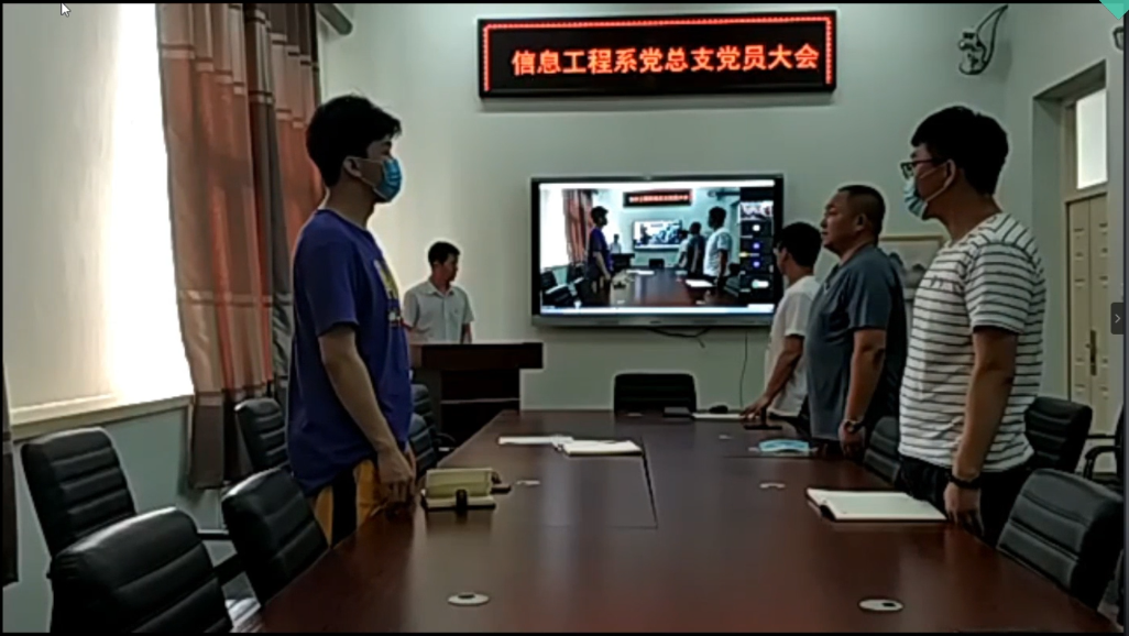 7月2日下午,信息系党总支在一号教学区2406会议室组织“信息工程系党总支党员大会”,举行新党员入党宣誓仪式。仪式由党总支组织委员吴文臣主持,党总支书记任鹏飞、副书记孙晓芳、计算机与电子专业学生党支部书记张雷蕾、视频传达设计专业学生党支部书记辛昊和在校教师党员现场参会,其他党员采取线上方式参加会议。